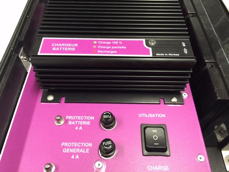 La caisse embarque un système complet de batterie 42Ah avec chargeur intégré. 2 modes permettent de recharger ou d’alimenter un coffret de prélèvement AMINUS-V04 à l’aide d’un cordon. Possibilité d’alimenter également un ventilateur 12VDC en même temps rendant ainsi le prélèvement autonome pour 24h.